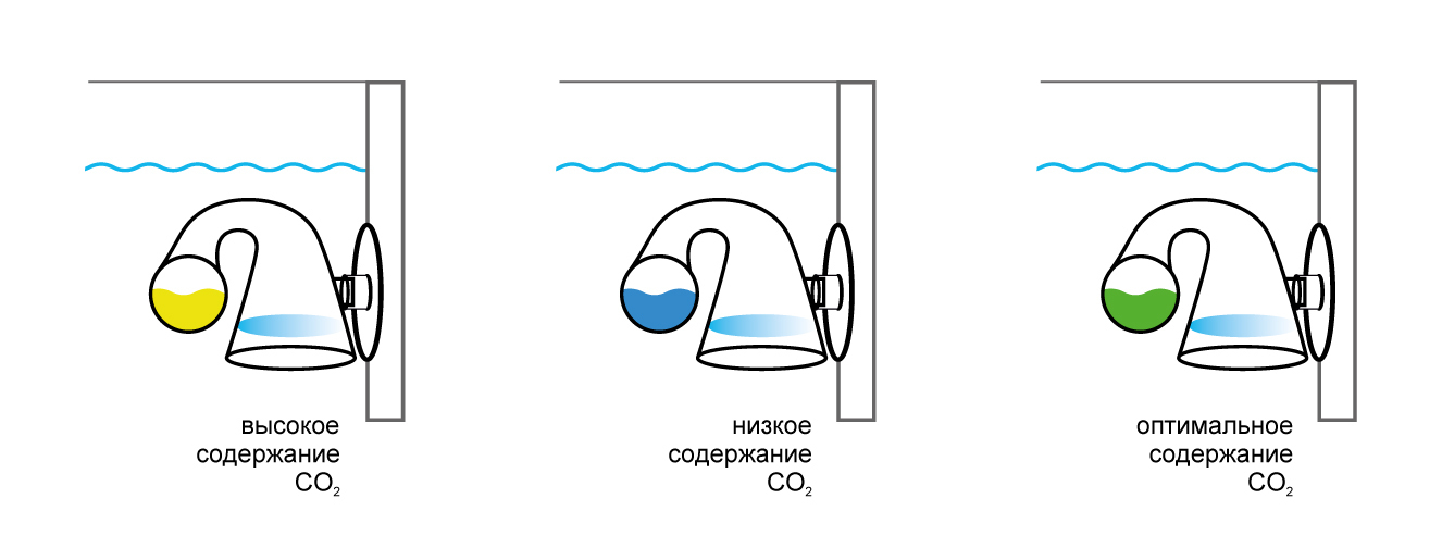 — зеленый — оптимальное содержание СО2